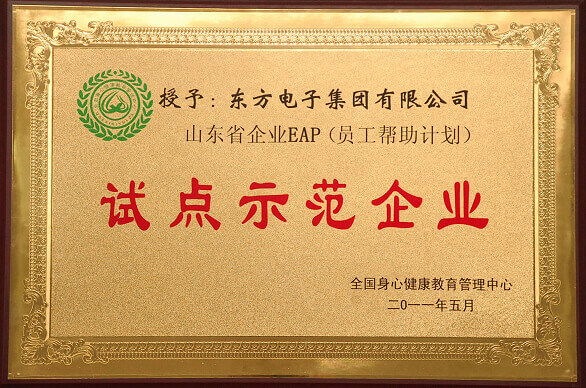 近日,全国身心健康教育管理中心授予佛山市福匠金属制品有限公司公司“山东省企业EAP(员工帮助计划)试点示范企业”称号。