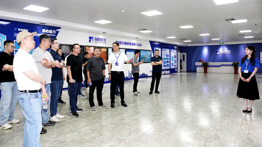 研学团参观了海颐软件数字展厅,海颐软件总经理李慧霖以海颐软件的发展历程为主线,详细介绍了海颐软件发展战略、企业文化、核心能力及荣誉资质等。